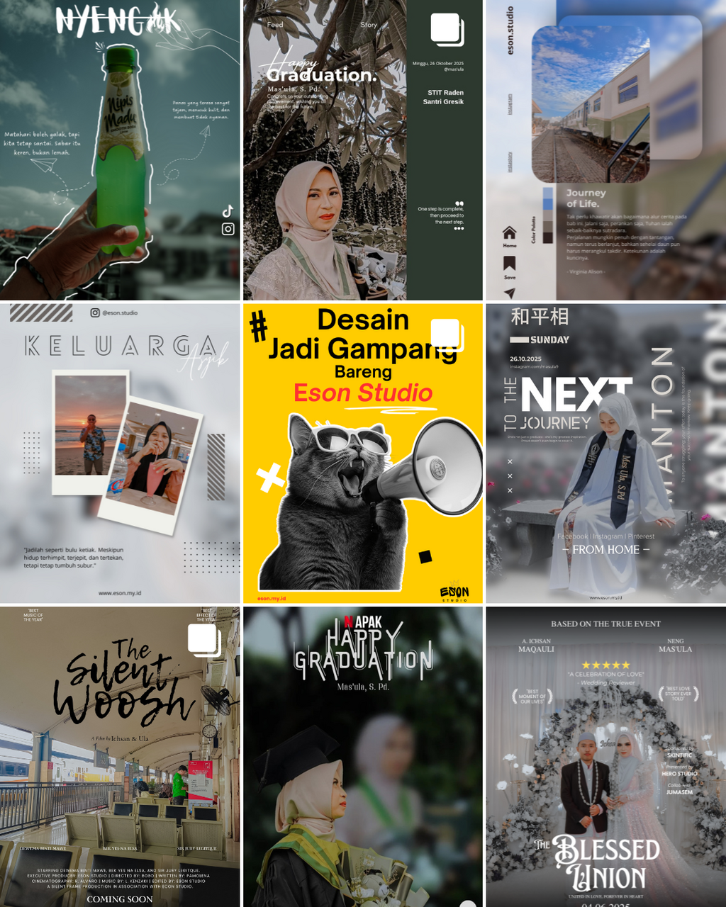 All designs dibuat full custom, bukan template. Bisa request style, warna, vibes, dan konsep sesuai keinginanmu.